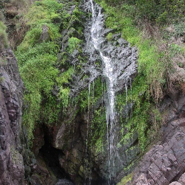 This waterfall in North Devon drops about 160 feet (48 meters) over dark rock to the beach below. The water flows through a narrow gorge and reaches a small cove facing the Atlantic. The site sits close to the South West Coast Path, a walking route that follows the coastline. At low tide, you can step onto the beach and see the waterfall from the bottom. The cliffs are steep and often wrapped in mist. Access is by a steep path that leads through fields and scrubland.