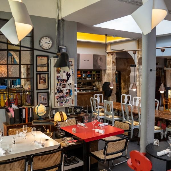 Le Derriere is divided into several rooms that replicate a Parisian apartment. Each room features its own furniture and decoration. The menu offers French classics such as entrecôte and escargots alongside modern dishes prepared with seasonal ingredients. The restaurant is located in the Marais district and welcomes guests in a private setting.