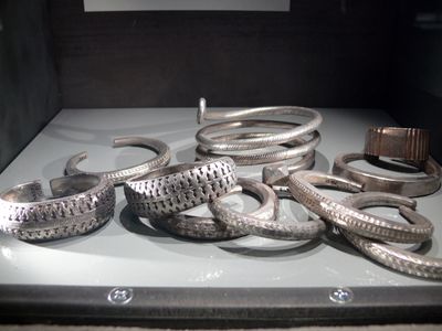 The Spillings Hoard contains two silver deposits weighing 67 kilograms and a bronze deposit of 20 kilograms discovered in a Viking farm field.