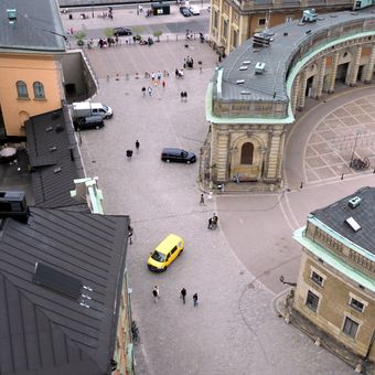 Located at coordinates 59.3263 latitude and 18.0696 longitude, Högvaktsterrassen functions as a central pedestrian area connecting multiple historical landmarks.