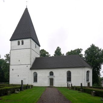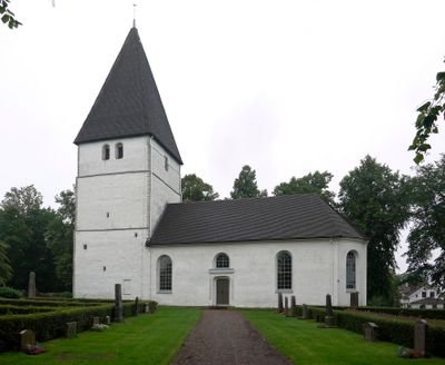 The stone church building features a prominent tower from the 12th century and exhibits traditional Swedish ecclesiastical architectural elements throughout its structure.