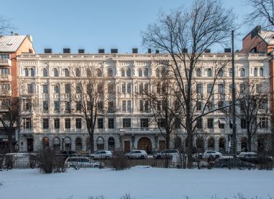 The Bonnierhuset features a late 19th-century architectural design with multiple floors dedicated to residential and office spaces along Sveavägen street.