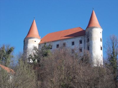 Bizeljsko Castle is a fortified residence in Bizeljska vas situated on elevated terrain in southeastern Slovenia. The complex includes residential buildings, defensive walls, and a Baroque chapel within its grounds.