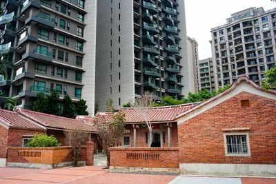 The structure represents a traditional family residence style that emerged during Taiwan's agricultural period, reflecting the housing needs of extended families.