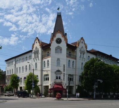 The Grand Hotel Ukraine is a hotel in downtown Dnipro that blends constructivist and baroque architectural elements along Dmytro Yavornytsky Avenue. Its multi-story structure combines these two styles in a way that remains visually distinct today.