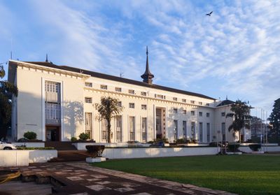 The Bulange stands on Namirembe Hill as a four-story symmetrical structure housing the parliament and offices of the Buganda Kingdom administration.