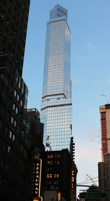 The glass exterior of 1717 Broadway rises 229.7 meters into the Manhattan skyline with 68 floors above ground and 6 floors below ground level.