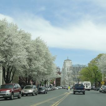Great Barrington is a community in Berkshire County, Massachusetts, set within the Housatonic River valley and surrounded by forested hillsides. The town center features 19th-century brick buildings along Main Street, with residential neighborhoods extending into the nearby countryside.
