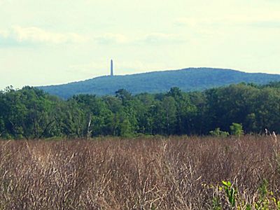 The High Point Monument stands 220 feet tall at the summit, commemorating war veterans while providing panoramic views of the Delaware River Valley.