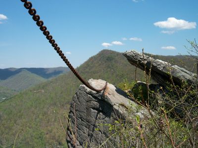 During the 1930s, local residents secured a massive boulder with chains to prevent it from falling onto Pineville, creating the famous Chained Rock attraction.