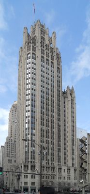 Tribune Tower, Gothic Revival skyscraper in North Michigan Avenue, Chicago, US