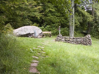 The property contains a notable rock where John Burroughs played during his childhood, which later became his final resting place through burial.