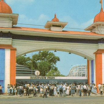 Riverview Park was an amusement park in North Center, Chicago, occupying a large stretch between several main streets and the north branch of the Chicago River. The grounds held rides, game booths, and wide walkways where visitors moved between attractions.