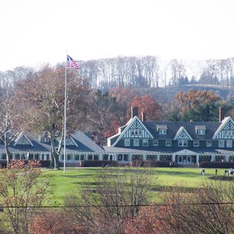 The Pennsylvania Turnpike divides the course, with holes two through eight positioned separately from the main grounds of the facility.