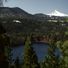 Blue Lake Crater contains three connected depressions filled with water, surrounded by steep forested slopes at an elevation of 3,461 feet.