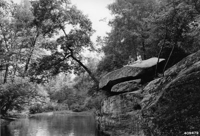 Bell Smith Springs is a designated natural landmark in Shawnee National Forest featuring sandstone cliffs, stone arches, and eight miles of marked hiking trails. The site contains multiple routes of varying difficulty that pass through creek beds and lead past natural pools carved into the rock.