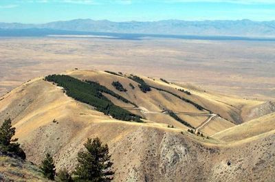 Big Southern Butte rises 2,500 feet above the Snake River Plain with an elevation of 7,550 feet and a base diameter of 6.5 kilometers.