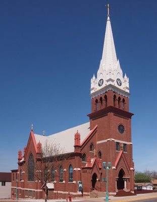 The Church of the Holy Family stands as a Gothic brick structure designed by architect A.F. Wasielewski at 307 Adams Avenue in Eveleth, Minnesota.