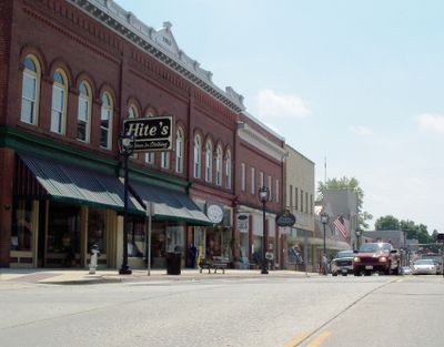 Clarksville Historic District is an area with Greek Revival style buildings spread across central and surrounding residential neighborhoods. The district includes homes and commercial structures alongside religious buildings that reflect the look and character of a typical 19th-century American town.