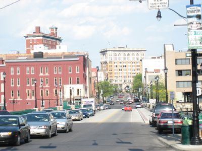 The structure maintains both vehicle and pedestrian access, serving as a primary transportation link between different sections of Rochester's urban center.