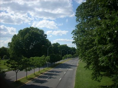 Cunningham Park extends across 358 acres of land between Grand Central Parkway and Long Island Expressway, featuring forests, open fields, and recreational spaces.