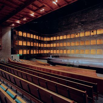 The Felsenreitschule is a theater carved into the Mönchsberg mountain in Salzburg with seating for around 1,400 spectators. The arena features stone seating areas built directly into the rock face, along with an orchestra pit and a retractable roof for protection from the weather.