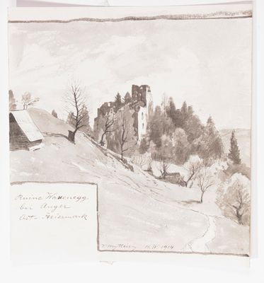 The Waxenegg castle ruins stand on elevated ground at 471 meters, featuring remaining stone walls and structural elements from its original construction.