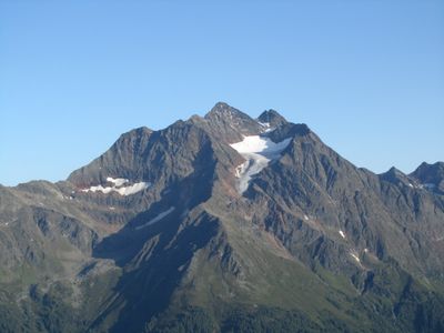 The mountain contains three distinct glaciers: Federbettkees to the north, Schwarzbrunnerkees to the west, and remnants of Rifflerkees on the southeastern face.