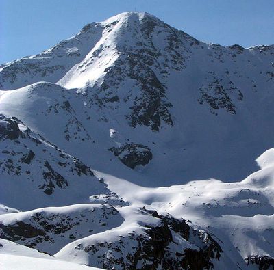 The Furgler peak rises to 3,004 meters above sea level in the Samnaun Alps, featuring two main ascent routes from the Serfaus-Fiss-Ladis ski area.