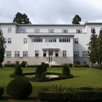 The Sanatorium Purkersdorf is a modernist building with clean lines, expansive windows, and three functional levels for physiotherapy, social activities, and patient rooms. Its open, light-filled design was revolutionary for medical architecture of that era.