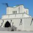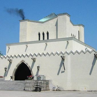 The Feuerhalle Simmering stands at the end of an alley, directly across from the main entrance of Vienna Central Cemetery, featuring oriental fortress architecture.
