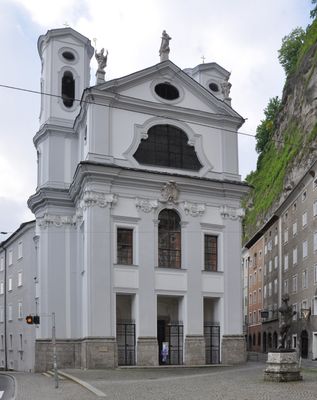 A rockslide from Mönchsberg mountain in 1669 destroyed the original church completely. It was rebuilt in its current baroque form under Prince Archbishop Johann Ernst Thun.