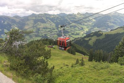 The Hahnenkammbahn cable car system connects the town of Kitzbühel with the mountain summit, covering an elevation difference of 878 meters.