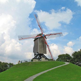 Built in 1770 on the city fortifications, this windmill represents one of four remaining structures from an era when wind power drove Brugge's grain processing industry.