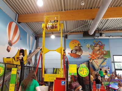 The entertainment center spans over 5000 square meters of indoor play areas featuring bumper cars, climbing structures, and the Disco Twister roller coaster.