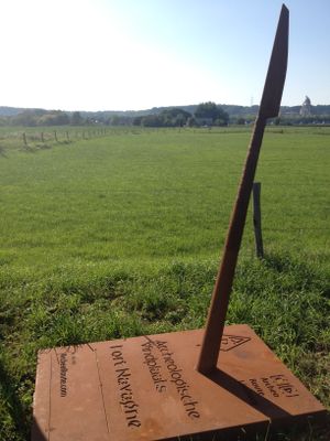 Fort Navagne stands near the Meuse River with visible ground elevations marking the locations of former bastions around the central building.