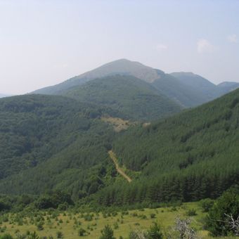 Mixed deciduous forests of beech, oak, and hornbeam cover the lower slopes, while extensive pastures spread across the higher altitudes of the mountain.