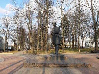 Maksim Bahdanovič, Bronze and granite memorial in central Minsk, Belarus.