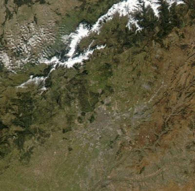 The Community of Madrid extends from the Sierra de Guadarrama mountains to the Tagus River basin at an elevation of 678 meters.