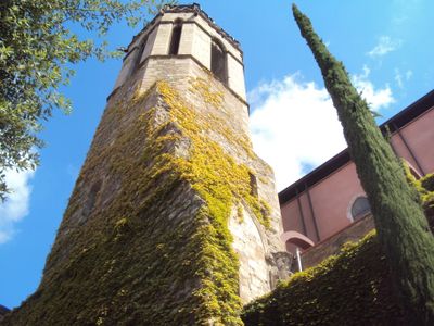 The Sant Esteve de Granollers church features a 34-meter-high bell tower with a square base and two octagonal upper sections adorned with Gothic trilobed tracery.