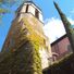 The base of the bell tower contains remnants of a Romanesque entrance, indicating the presence of an earlier religious structure at this location.