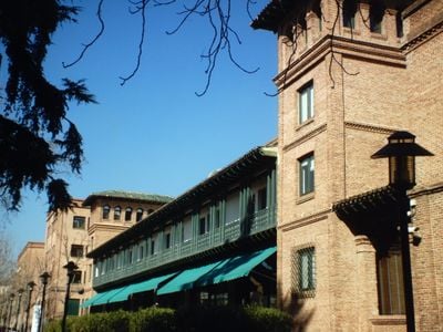 The Residencia de Estudiantes occupies several Neo-Mudéjar style buildings with gardens, meeting rooms, libraries, and residential spaces for students and researchers.