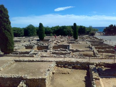 The archaeological site preserves the only Greek city remains in Spain, featuring visible layers of both Palaiopolis on a former island and Neapolis on the mainland.