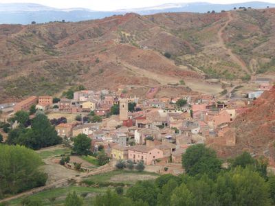 The village spans across 21 square kilometers at the bottom of a limestone valley, situated 700 meters above sea level in Aragon.