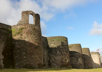 The Roman Walls of Lugo form a continuous late antique fortification system in northwestern Spain. The construction follows a rectangular plan with rounded corners and features towers at regular intervals built from large granite blocks and slate panels.