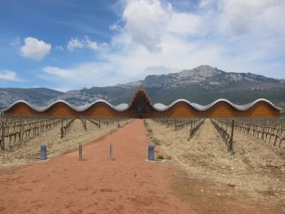 Architect Santiago Calatrava completed this advanced production facility in 2001, marking a new direction in Spanish winery architecture and wine manufacturing methods.