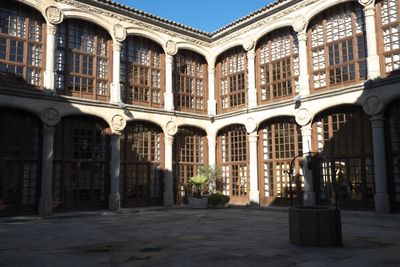 The columns within the palace showcase carved medallions representing heroes from both the Old Testament and medieval Spanish history.