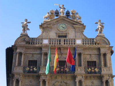 The streets of Santo Domingo and Mercaderes form part of the traditional bull running route during the San Fermín festival in July.