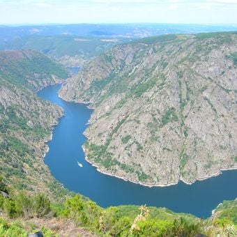 Ribeira Sacra is a geographic region in northern Galicia in Spain and covers twenty-six municipalities across Lugo and Ourense provinces. Deep canyons run through the area where the Miño and Sil rivers wind between green hills and steep slopes.