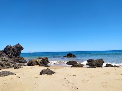 This beach is best visited during low tide when the full expanse of sand is exposed and accessible. There are no facilities here, so bring water and supplies with you for your time on the shore.